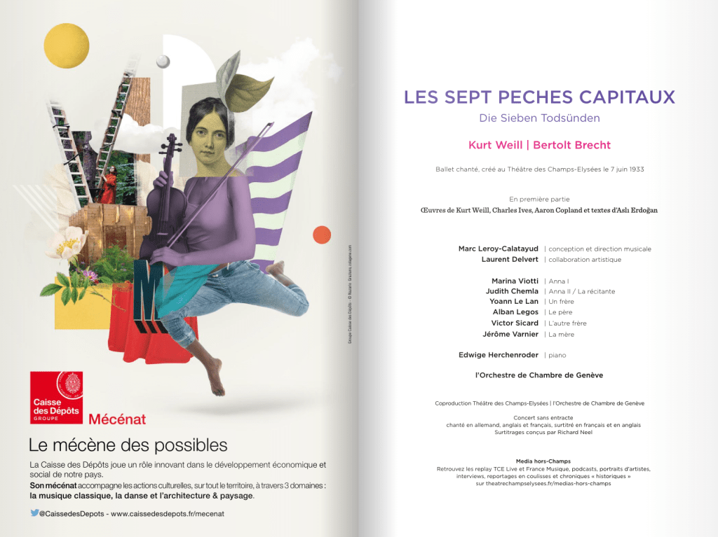 Posted on 22 Aug 2023DIE SIEBEN TODSÜNDEN BRECHT / WEILL / ASLI ERDOĞAN / MARC LEROY-CALATAYUD Théâtre des Champs-Élysées, le 10 janvier 2024 DIE SIEBEN TODSÜNDENDownload